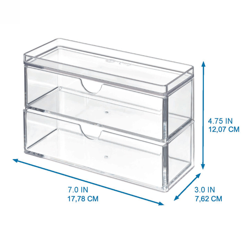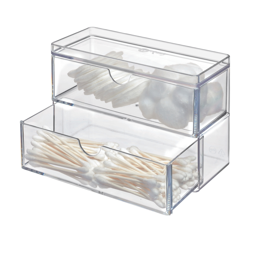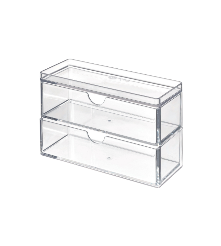 The HOME EDIT Cosmetic Organizer KLAR is ideal for space-saving storage of cosmetic items such as cotton swabs, pads and make-up. It has two drawers and is stackable. Thanks to its narrow design, it fits perfectly on narrow shelves and medicine cabinets.